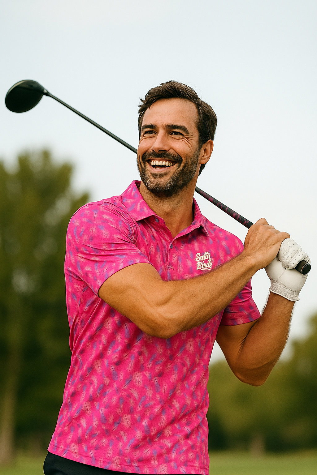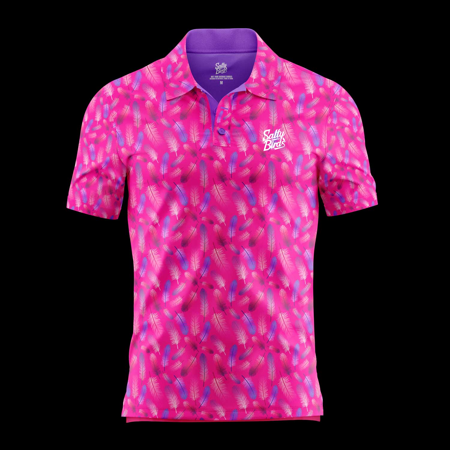 Experience the ultimate blend of performance and style with the Fairway Flamingo Polo. Crafted from premium polyester jersey, this polo delivers unmatched comfort, breathability, and moisture-wicking technology to keep you cool and confident on and off the course. Featuring a vibrant pink and purple palette with a striking feather design, this polo is made for golfers who dare to stand out. Perfect for every swing, sip, and stroll down the fairway, it’s lightweight, durable, and designed to move with you. Elevate your golf wardrobe and make every game a bold statement.