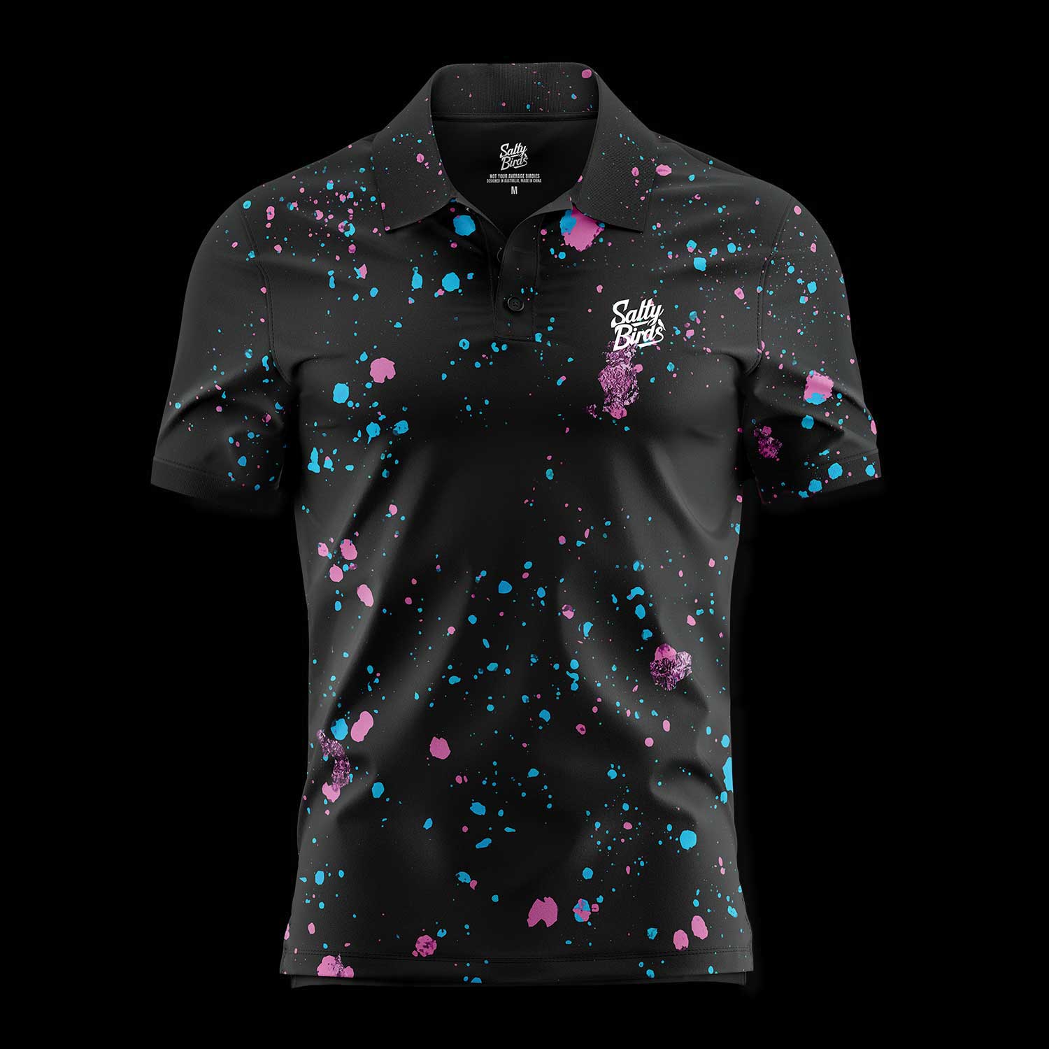 Unleash your inner artist on the fairway with The Paint Ball Polo. Featuring bold splashes of pink, blue, and white, this design is a vibrant masterpiece that brings energy and creativity to your game. Crafted from premium polyester jersey, it offers unbeatable comfort, breathability, and moisture-wicking technology, ensuring you stay cool and confident no matter the challenge. Lightweight, durable, and designed for maximum movement, The Paint Ball Polo is perfect for golfers who see the course as their canvas. Make every swing a stroke of genius with this standout piece.